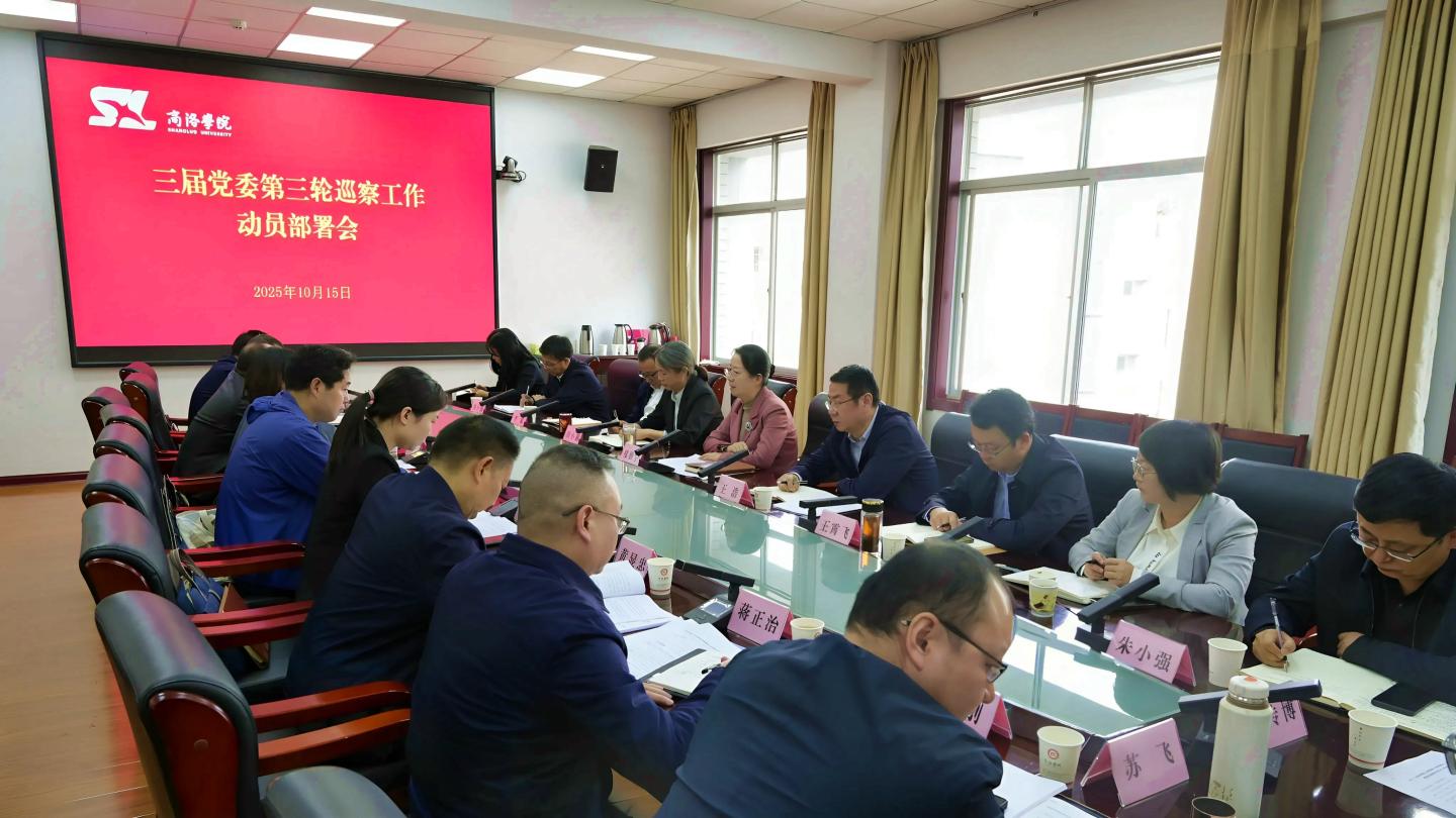 10月15日上午,校党委召开巡察工作动员部署会,启动三届党委第三轮巡察工作。巡察工作领导小组副组长、党委副书记、校长权雅宁出席会议并作动员讲话。巡察工作领导小组副组长、党委副书记、纪委书记王浩主持会议。巡察工作领导小组相关成员单位负责人、巡察组全体成员以及被巡察党组织主要负责人参加会议。权雅宁指出,本轮巡察工作,是在全校上下全面总结“十四五”办学成就、凝心聚力谋划“十五五”规划,开启研究生教育,进...