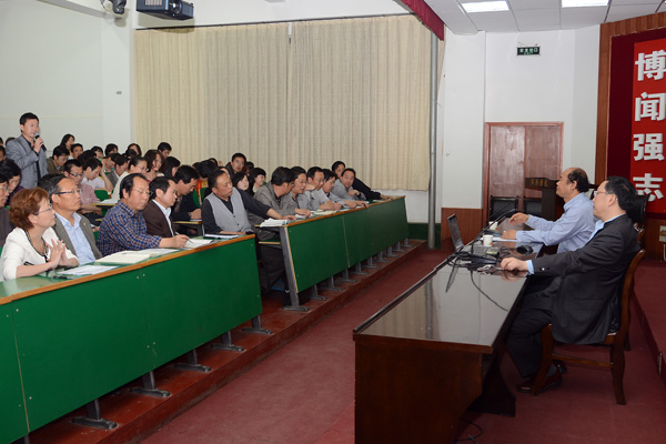 在下午的报告中,史秋衡教授围绕《应用型本科院校教育目标与评价》这一主题,从国家教育改革和发展规划纲要的基本结构,地方性本科院校发展的国家原则,教育指标及构建原理三个方面作了深入的讲解。他结合国家政策和高校运作的实际,分析了国家教育改革纲要的思路和基本结构。他强调,全面提高高等教育的质量,是评价高校教育指标的关键词。教育现代化是实现全国现代化的引领,这就要求高校要处理好自上而下、自下而上的关系。地方性应用型院校建设要结合地方发展实际,把人才培养规格的重点放在培养服务区域经济发展、地方产业转型升级、企业技术创新所需的应用型、技能型、复合型人才上。通过列举牛津大学教学质量的学院监控制度、巴黎高师研究性教学质量管理模式、美国州立大学质量监控的发展指标、德国高校实验实训等案例,史秋衡教授深入阐述了高等院校的教育指标和构建原理。