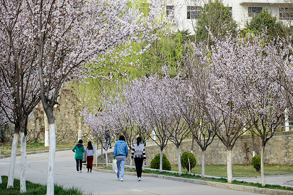 四月的校园,万物复苏,气温回暖,各种植物退下了冬日的臃肿,换上了充满生机的春装,校园里一派暖春的景象。柳树初生的嫩芽随风摇曳,些许杏花展露微白的花蕊,桃花偷偷羞红的笑脸,舞活了整个生机盎然的校园。同学们享受着鲜花和暖阳,在春光明媚的校园里读书、学习;趁着春意踏青、春游,用手机和相机留下美好的瞬间,在操场上锻炼的人也渐渐增多。