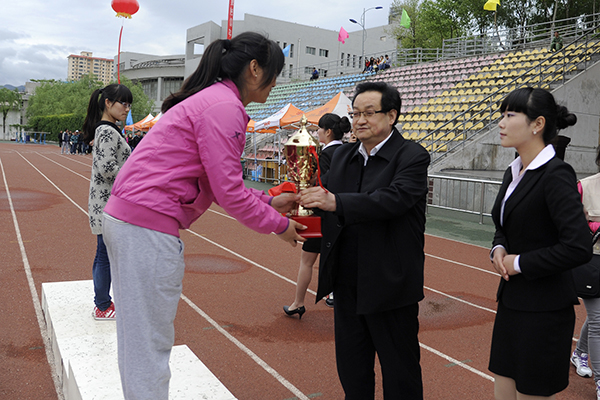 在热烈的掌声中,校党委书记张景书为获得精神文明奖的集体颁奖,党委副书记左晓民为获得男女团体前三名的集体颁奖,副校长魏书堂为获得男子团体和女子团体前三名的集体颁奖。