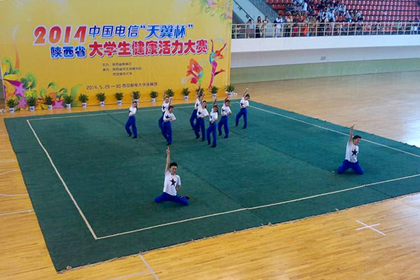 5月27日至6月1日,由陕西省教育厅主办,陕西省学生体育协会、西安邮电大学承办的2014年陕西省大学生健康活力大赛于在西安邮电大学(长安校区)体育馆举行。来自全省49所高校的1299名运动员参加本次比赛。英国365上市公司健美操队参加了普通高校组3个项目的比赛。经过紧张激烈的角逐,英国365上市公司代表队获得中国风健身舞(草原雄鹰)第二名,健身排舞第二名,街舞推广套路JAZZ规定套路第五名,总团体第十名,并获得“体育道德风尚奖”。王晨晨同学获得 “优秀运动员”称号,教练张玉兰应邀担任本次比赛的裁判工作并获得“优秀裁判员”称号。