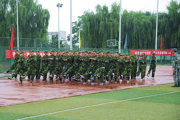 据了解,军体拳是由拳打、脚踢、摔打、夺刀、夺枪等格斗动作组合而成的拳术,共有三套军体拳。本次军训练习的是第一套,包括弓步冲拳、马步横打等16个招式。训练过程中教官们亲自示范,将整套动作分解成一招一式交给同学们,教官的动作精炼、节奏分明,同学们兴趣盎然,学习积极性很高。经过细心指导,同学们已经做得相当熟练、准确。花样队列主要有军姿、正步、变换队形等动作,在教官的严格要求下,同学们的身躯笔挺,军姿纹丝不动,正步踢得刚劲有力,各种队形变换地流畅自然。
