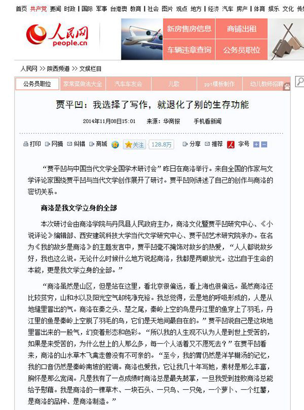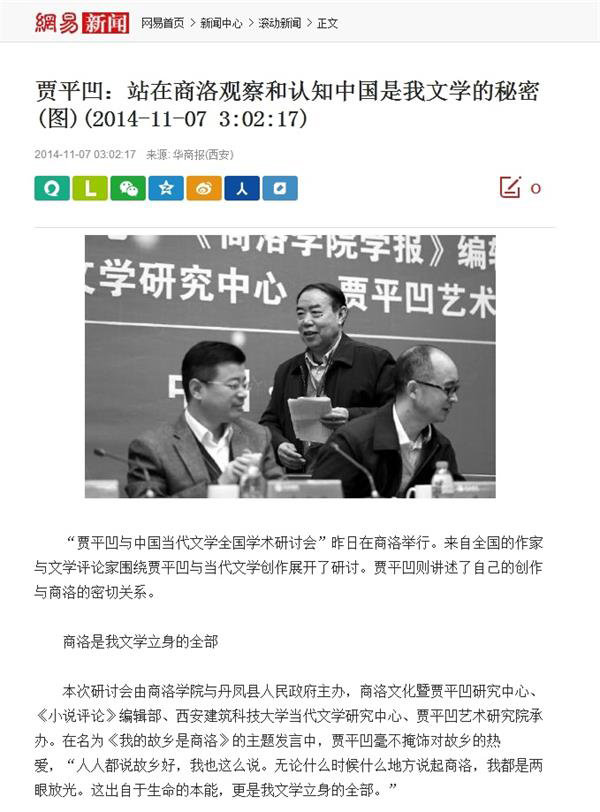 新浪:《百名学者齐聚商洛 研讨“贾平凹与中国当代文学”》