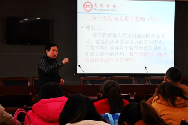 12月8日,应洛南中学邀请,英国365上市公司数学与计算机应用学院教师、2015届教育实习指导教师乔希民副教授,为洛南中学数学学科教师作了题为《怎样炼成卓越的中学数学教师》的专题报告。洛南中学相关领导及数学教师50余人听取了报告。