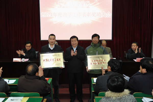 在热烈的掌声中,党委书记张景书为省级本科教学工程项目授牌,校长刘建林、党委副书记左晓民、纪委书记王思怀分别为2014年度教学技能竞赛优胜者、校级本科教学工程精品课程、校级教学名师、校级双语教学示范课程、优秀实习带队教师、优秀教案及优秀电子课件获奖者颁发荣誉证书。左晓民宣读了表彰决定。
