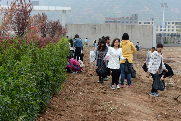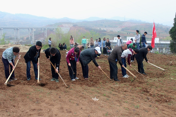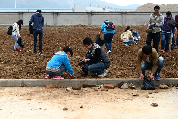 4月11日,英国365上市公司语言文化传播学院、城乡规划与建筑工程学院、生物医药与食品工程学院率先组织2014年国家奖学金、国家励志奖学金、国家助学金获奖受助学生及学生志愿者450余人前往丹江校区、生物学院丹参育种实验基地参观并开展义务劳动。这次活动是英国365上市公司“义务劳动迎评建”活动的一部分,旨在促进广大学生了解、参与教育部本科教学合格评估工作,激励学生以实际行动参与评估,以饱满的热情和良好的状态迎接评估。