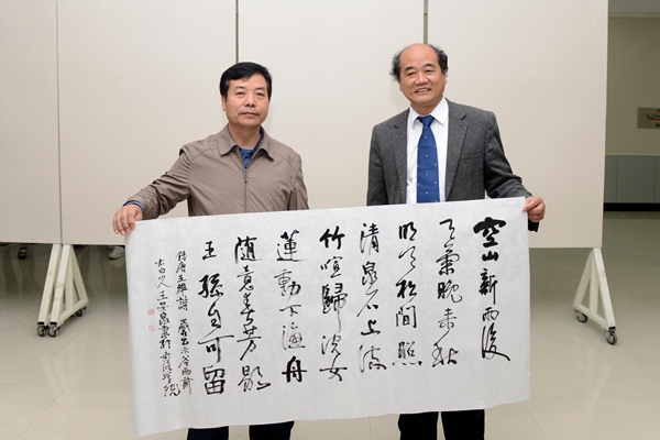 王安泉教授表示,非常高兴能担任学院的兼职教授,希望在今后教学工作中与大家共同研究学习。在商洛学习生活期间,将继续采风写生,进行书画创作,把秦岭风光展现给世人,并且将我对山水人物画作和儒道研究成果与大家分享。