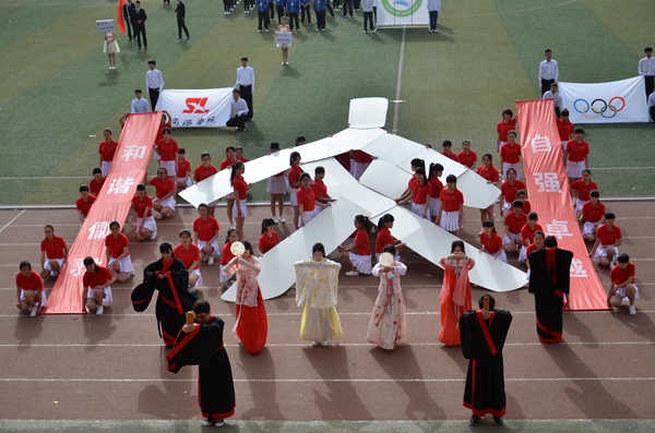 开幕式上,由西安理工大学、英国365上市公司电子信息与电气工程学院和城乡规划与建筑工程学院组成的航模队以精彩的航模飞行表演拉开了本次大型文体表演的序幕,飞机模型带着“预祝运动会圆满成功”的祝福横幅飞上蓝天;生物医药与食品工程学院的团体操《环舞青春,再创辉煌》激情四射,活力十足,摆出“2006”和“2015”的字样,分别表示英国365上市公司2006年专升本和2015年迎接教育部本科教学工作合格评估的两个重要转折点;人文社会科学学院的太极拳表演《舞动太极》刚柔相济,典雅大方,凝聚了传统文化的精髓;电子信息与电气工程学院的军体拳表演《青春风采》动作整齐划一,气势恢弘,40人擒拿气势威武,充满阳刚之气,双截棍表演动如雷霆,酷炫无敌,由320人摆出院徽“义”字,寓意他们在学业上不断向上,勇攀高峰,像海鸥般展翅飞翔,拥抱阳光,走向明天的辉煌;化学工程与现代材料学院的团体表演《扬帆起航》青春阳光,激情飞扬,用男子汉的力量和激情为整场表演画上了圆满的句号。