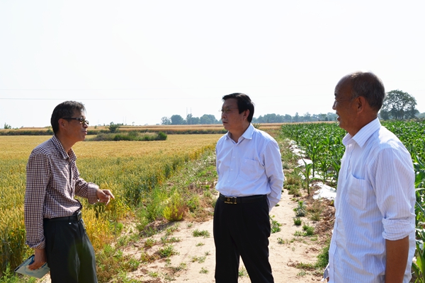 在咸阳市泾阳县兴隆镇,张景书深入商麦“5226”示范田,与商麦种植示范户亲切交谈,观摩了商麦的抗旱性、长势、落黄及籽粒饱满情况,了解了商麦“5226”在今年多雨季节的抗病情况、产量及推广面积。泾阳县现代种业公司经理藏喜详细介绍了商麦“5226”在渭北旱塬、甘肃陇南的实验情况,并表示“商麦5226”有望成为渭北旱塬地区小麦主栽品种。