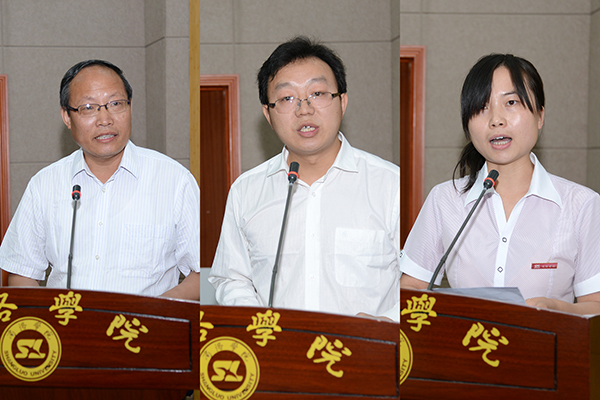 文传学院党总支书记王正良、电信学院教师袁训锋、生物学院辅导员王珊分别代表受表彰的先进集体和个人作了大会发言。
