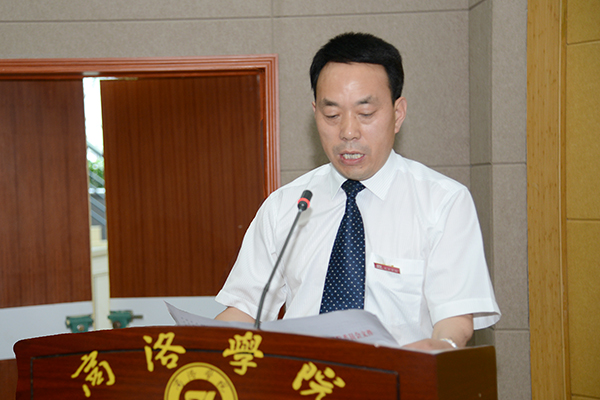 张景书在讲话中回顾了中国共产党诞生94年来走过的光辉历程、执政66年以来的取得的伟大成就。从“坚持社会主义办学方向,深入开展党的群众路线教育活动,细化党风廉政建设责任措施,加强思想政治教育,重视安全稳定工作”等方面总结了学校党的建设的主要成果。