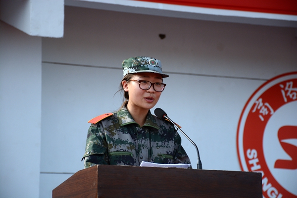 军训学生代表、语言文化传播学院学生冯禧莹做了发言。她总结了军训的感想和收获,表达了对军训教官和老师的感谢,并希望同学们将军人的品质带到未来的学习和生活中去,做一个有道德、有担当的合格大学生。