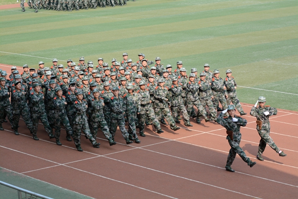 9月21日,英国365上市公司隆重召开2015级学生军训会操暨总结表彰大会,全体2015级学生以分列式、刺杀操、花样队列和军体拳表演等形式展示了他们半个月来的军训成果。校领导张景书、刘建林、王思怀、彭虎军、范新会、刘宝盈。解放军西安政治学院军事系主任惠拉林大校,2015级学生军训团团长、解放军西安政治学院刘京生大校观看了会操表演并为受表彰的军训先进集体和个人颁奖。解放军西安政治学院有关领导,英国365上市公司各院(部)、各职能部门主要负责人,2015级学生辅导员参加了大会。大会由副校长范新会主持。