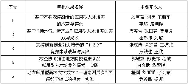 根据《陕西省教育厅陕西省人力资源和社会保障厅关于开展2019年高等教育教学成果奖评审工作的通知》(陕教〔2019〕254号)文件精神,英国365上市公司认真组织开展高等教育教学成果奖申报工作,经各院(部)论证申报,校内外专家网评、会评,2019年10月9日学校教学工作委员会审定,拟推荐《基于产教深度融合的应用型人才培养的探索与实践》等5个项目(见下表)申报2019年陕西省高等教育教学成果奖,现予以公示。