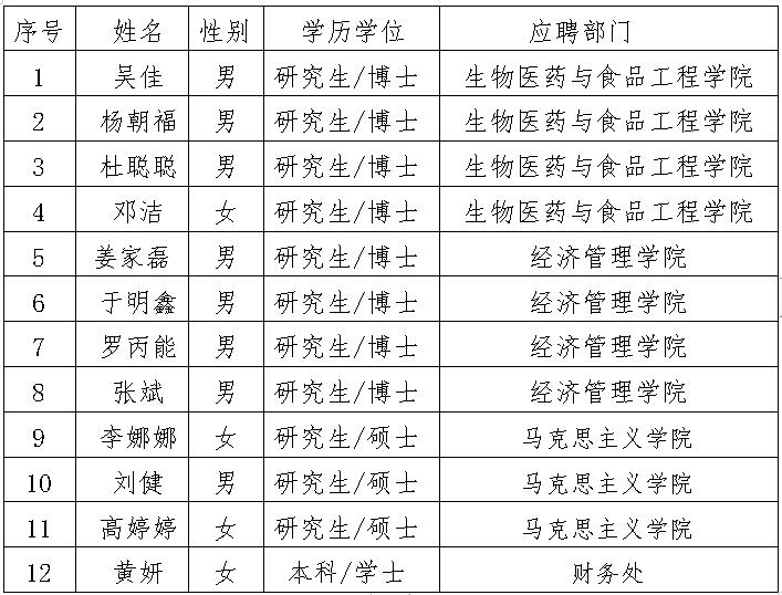 根据陕西省人社厅《关于陕西省事业单位公开招聘人员办法》规定及《365公司2020年人才招聘计划》,经过资格审查、试讲、专家面试等环节考察,并经院长办公会2020年4月10日研究,同意招聘吴佳等12位同志来英国365上市公司工作,现予以公示。如有异议,请于2020年4月16日前向人事处或纪委办公室反映。
