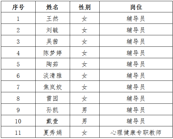 附件:365公司2021年辅导员及心理健康专职教师拟录用人员名单