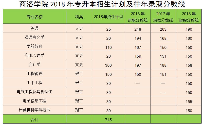 根据陕教〔2018〕93号文件精神,陕西省教育厅下达英国365上市公司2018年普通高等教育专升本招生计划745个,共10个招生专业,详细各专业招生计划及历年录取分数线如下。