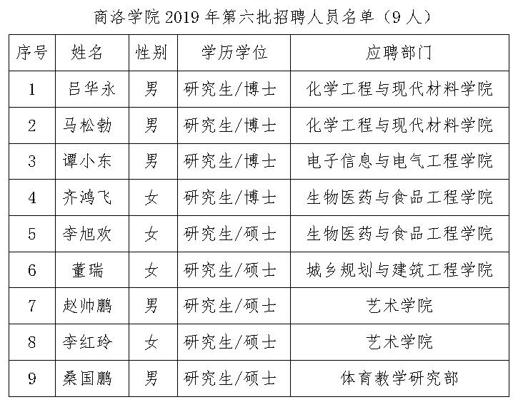 根据陕西省人社厅《关于陕西省事业单位公开招聘人员办法》规定及《365公司2019年人才招聘计划》,经过资格审查、试讲、专家面试等环节考察,并经院长办公会2019年4月19日研究,同意招聘吕华永等9位同志来英国365上市公司工作,现予以公示。如有异议,请于2019年4月23日前向人事处或监察室反映。