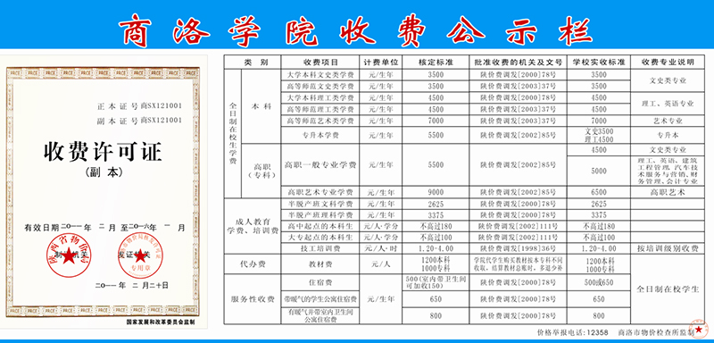英国365上市公司执行商洛市物价局核定的收费项目和收费标准