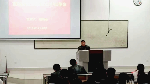 11月20日下午,校党委副书记、校长范新会以《重温党史不忘初心牢记使命》为题为建工学院全体学生党员讲授专题党课。