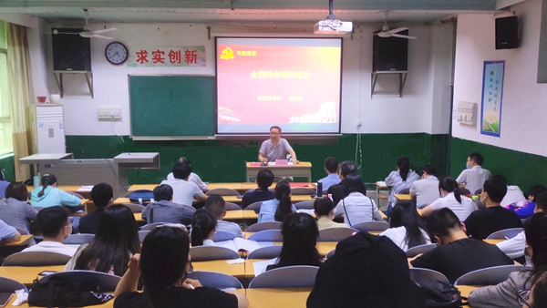 6月17日,校党委书记龙治刚参加生物学院党总支主题党日活动,为师生作全国两会精神宣讲。生物学院全体教工党员、民主党派和党外知识分子代表、毕业班学生党员参加了宣讲会。