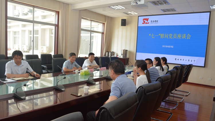 当天下午,学校还举办了“七一”慰问党员座谈会。范新会、彭虎军与部分困难党员代表进行了座谈交流,详细了解了他们的工作、生活和家庭情况,代表学校党委向他们发放了慰问金。范新会在座谈中感谢他们为学校建设和发展作出的贡献,鼓励他们要乐观坚强,树立战胜困难的信心和决心,以积极乐观的心态面对生活和工作。希望他们不忘初心、勇担使命,继续在各自岗位上发挥好党员的先锋模范作用,为学校“十四五”期间事业发展及“一流学院”建设贡献智慧和力量。与会党员代表衷心感谢学校的关心关怀,表示将不辜负组织和学校的殷切期望,将尽己所能为学校各项事业高质量发展添砖加瓦。