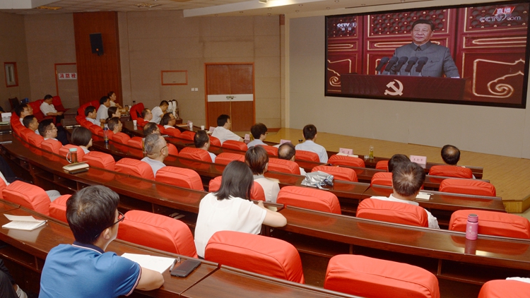 英国365上市公司高度重视、精心部署,提前下发通知,组织师生通过在线方式集体收看大会实况。学校在图书馆一楼报告厅设主会场,省委党史学习教育第十三巡回指导组组长、商洛市人大常委会一级巡视员刘淑慧,全体校领导、党委委员、机关副处级以上干部共同收看了大会直播,认真聆听习近平总书记的重要讲话。各级党总支、直属党支部、团委设立20个分会场,组织广大师生收看大会直播。