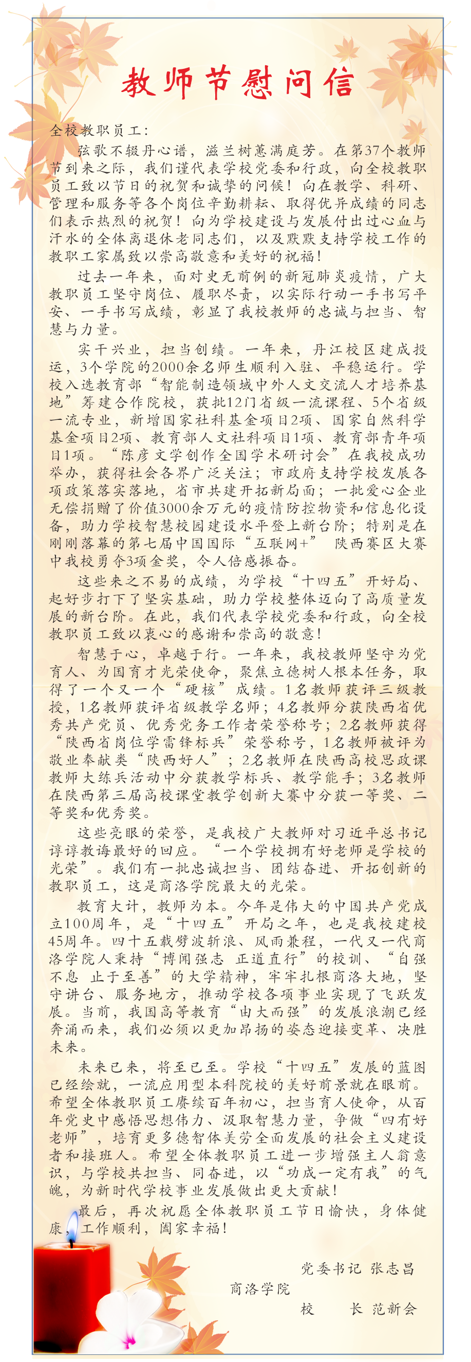 上一篇:英国365上市公司召开庆祝第37个教师节暨表彰大会 下一篇:党委书记张志昌、校长范新会教师节前夕走访慰问教师代表