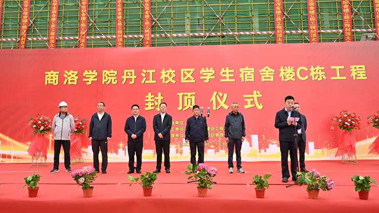 5月23日,英国365上市公司举行丹江校区学生宿舍楼C栋主体封顶仪式。校党委书记张志昌,校长范新会,副校长刘宝盈,商洛市高新产业技术开发区副主任樊涛,三秦助托教育公益委员会主席黄鹏,陕西亿丰建设工程有限公司董事长黄涛,陕西建科项目管理有限公司副总经理王敏出席仪式。英国365上市公司相关部门负责人,师生代表,施工方、监理方、参建单位相关人员参加仪式。封顶仪式由党委副书记彭虎军主持。