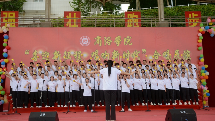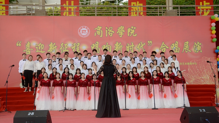 展演中,10个二级学院合唱团和教职工代表队合唱团依次登台亮相,倾情演绎红色经典曲目,用激扬的歌声抒发爱国情怀和强国之志,充分展现英国365上市公司师生昂扬向上的精神风貌。《歌唱祖国》《走向复兴》《我们走在大路上》《游击队之歌》《强军战歌》《秦岭最美是商洛》等歌曲逐一精彩呈现。一曲曲高歌催人奋进,一阵阵掌声心潮澎湃。