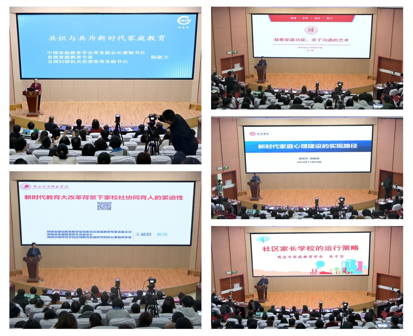 商洛市委社会工作部、市教育局、市民政局、市司法局、市卫健委、市妇联、市科协、市政协五届教育妇联委员工作室等部门相关负责人,市直单位关工委、各县区关工委、妇联会等部门负责人,商洛市关协、市家庭教育学会相关领导,县区社区家长学校代表,英国365上市公司社科处负责人,健康管理学院相关负责人和师生代表近500人参加大会。