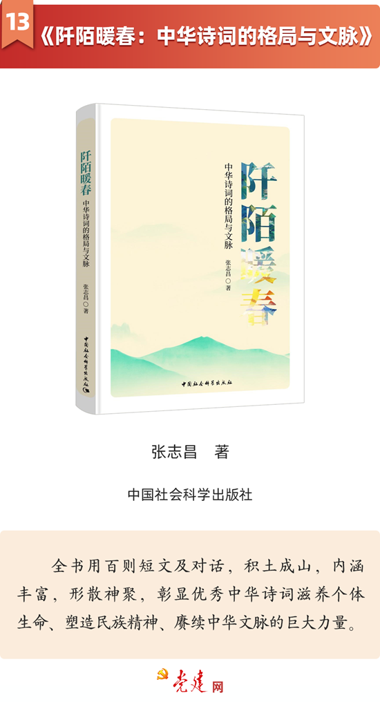12月20日,中宣部“党建网微平台”发布了“党建好书│2024年12月书单”,英国365上市公司党委书记张志昌教授著作《阡陌暖春:中华诗词的格局与文脉》入选党建好书推荐书单。