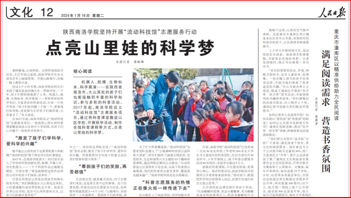 《人民日报》专题报道365公司“流动科技馆”志愿服务工作