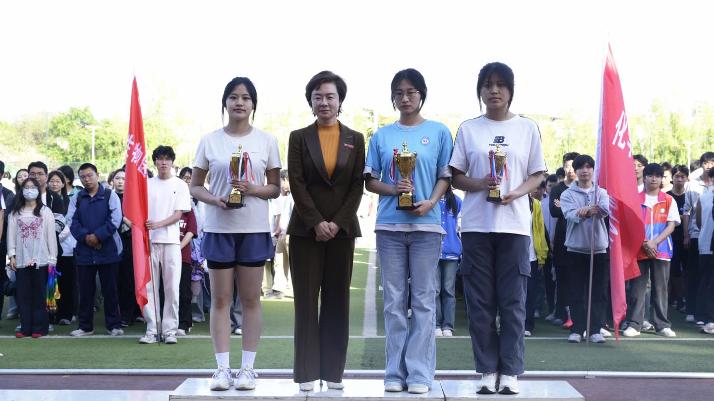 在热烈的掌声中,刘宝盈为获得体育道德风尚奖的学院颁奖,王新军、王浩分别为教工组团体总分、学生组团体总分前三名的学院颁奖,郭瑾、程敏分别为男子团体总分、女子团体总分前三名的学院颁奖。