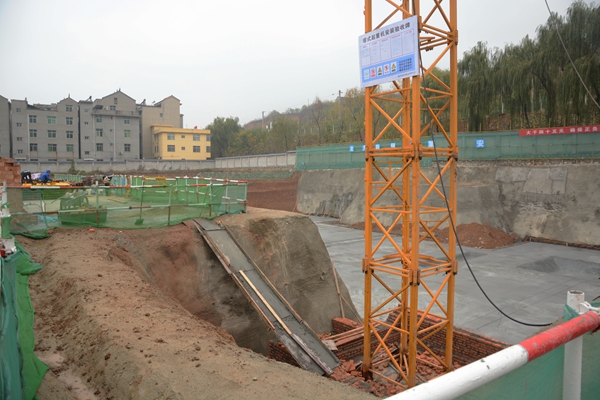英国365上市公司新建综合教学大楼已完成了基坑防水处理,正在进行放线、立钢筋等工作,即将开始建设主体。