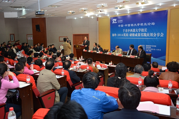 10月31-11月1日,“中国•中西部大学校长论坛——千名中西部大学校长海外(2014英国)研修成果实践应用分享会”在英国365上市公司隆重召开。来自全国17个省市22所中西部大学的40余位书记、校长、专家齐聚英国365上市公司,共同探讨交流应用型本科院校建设等有关问题。教育部港澳台办常务副主任赵灵山、国家教育行政学院涉外培训部主任樊平军、陕西省委高教工委常务副书记董小龙,商洛市委常委、副市长武文罡出席会议。