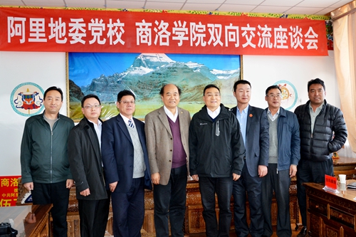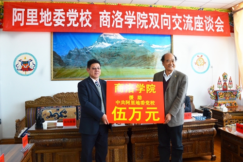 刘建林一行与中共西藏阿里地委党校干部职工进行座谈交流,并代表学校向阿里地委党校资助5万元,用于支持该校学科专业建设。西藏阿里地委委员、行署副专员王彪,阿里地委党校常务副校长白玛多吉出席座谈会。座谈会由阿里地委党校副校长郭运良主持。