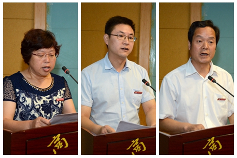 经管学院党总支书记鲁绵茸、学生处党员张文、数计学院辅导员黄洁分别代表先进基层党组织、优秀共产党员和优秀党务工作者做了发言。