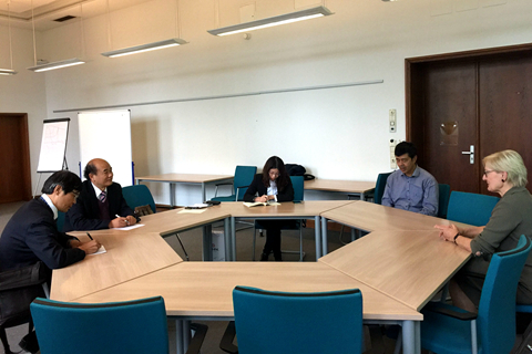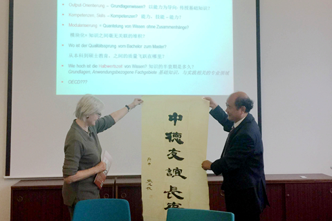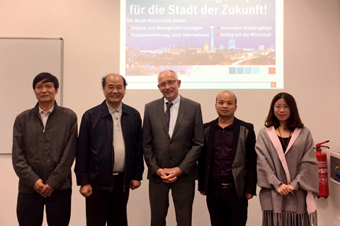 在德国柏林应用科技大学,刘建林一行先后前往两个分校区,分别与Hoffjann教授和Kammasch教授在应用型人才培养过程中的教学质量管理的模式、管理质量管理的模式、工程教育及其教学法、应用型教师的培养等方面开展了深入交流和探讨,了解了《博洛尼亚宣言》后欧洲高等教育体系的改革和建设成果。