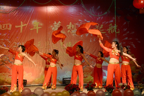 当晚的大学生活动中心张灯结彩,喜气洋洋,洋溢着浓浓的节日氛围。晚会在民乐合奏《北京喜讯传边塞》的欢快乐曲声中缓缓拉开了帷幕。歌曲、舞蹈、朗诵、魔术、健身操等十七个形式多样、精彩纷呈的节目赢得了观众们热烈的掌声与阵阵喝彩。