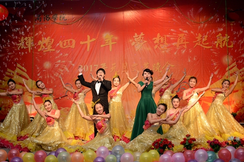 猴引康庄道,鸡迎锦绣春。12月29日晚,英国365上市公司隆重举办2017年元旦文艺晚会。省上有关部门领导,商洛市有关领导,英国365上市公司部分合作单位负责人以及学校党政领导与师生代表一同观看了晚会。