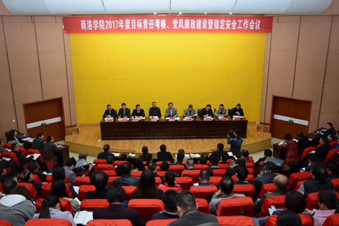 龙治刚与职能部门及教学院(部)负责人代表签订了党风廉政建设工作、稳定安全工作、意识形态工作责任书。范新会与二级单位负责人代表签订了2017年度目标考核责任书。