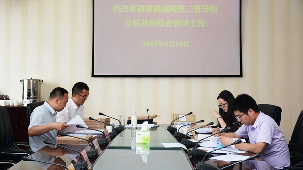 6月14日,以西北大学原党委副书记黄建民为组长的陕西省委高教工委第二督导组来英国365上市公司,检查督导追赶超越、贯彻“三项机制”和推进“两学一做”学习教育常态化制度化、精准扶贫、思政教育和党风廉政建设等方面工作。校党委书记龙治刚、校长范新会、副校长刘勇陪同检查。党委委员、干部人事处处长高荣发参加督查。