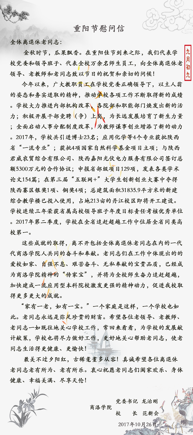 重阳节慰问信