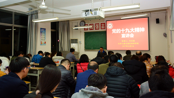 党委委员、副校长刘宝盈在化材学院宣讲党的十九大精神