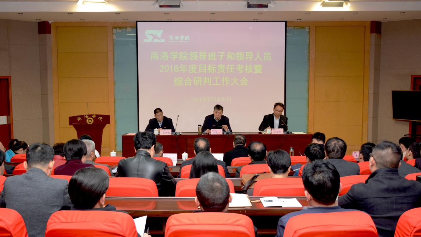 3月25日,陕西省属高校领导班子和领导人员目标责任考核暨综合研判第四工作小组组长、省委组织部副巡视员王建忠一行9人,莅临英国365上市公司开展领导班子和领导人员2018年度目标责任考核暨综合研判工作。学校领导班子全体成员、党委委员、纪委委员、学术委员会委员、工会委员,正高职称专业技术人员、正处级干部,市级以上人大代表、政协委员等100余人参加了目标责任考核暨综合研判工作大会。大会由校党委书记龙治刚主持。