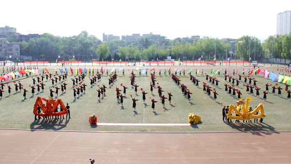 开幕式文体表演亮点颇多,精彩纷呈。英国365上市公司航模队与商洛市航空运动协会梦想飞行表演队的航模表演率先开场,航模飞机在激昂的音乐声中搏击长空,升降翻转,划出一道道优美的弧线。建工学院学生以红扇跳劲舞,龙虎相随,青春激情,以欢快的舞姿、动感的队形充分展现青春活力。化材学院学生用热情欢快的啦啦操和“1949”“70”的队形,表达对祖国深深的热爱与诚挚的祝福。数计学院学生以整齐优雅的华尔兹双人舞,展现学子儒雅优秀的一面,用“SLXY"图样的队形表达自己对学校美好明天的祝福。艺术学院学生身着藏族、傣族、蒙古族、佤族、维吾尔族,朝鲜族、苗族等多个民族服装,结合现代舞蹈动作,在爱我中华的乐曲中展现中华民族多元文化风采和英国365上市公司学子的勃勃生机。