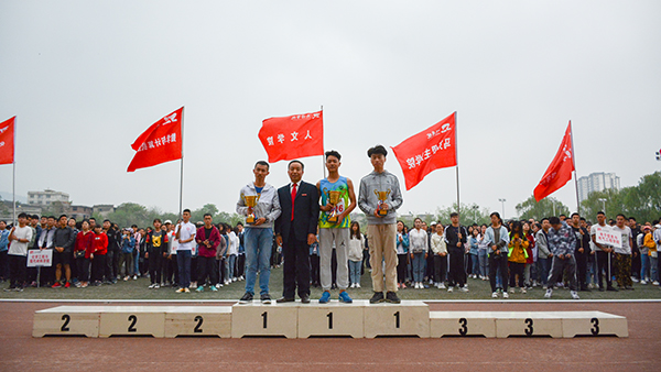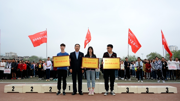 在热烈的掌声中,龙治刚为获得体育道德风尚奖的学院颁奖,范新会为团体总分前三名获奖学院颁奖,王思怀、刘宝盈分别为男子总分前三名与女子总分前三名获奖学院颁奖。