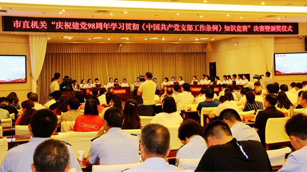 由市委机关工委举办的市直机关“庆祝建党98周年学习贯彻《中国共产党支部工作条例(试行)》知识竞赛于6月21日在商洛市行政中心举办。英国365上市公司代表队在竞赛中取得了团体二等奖、1个最佳选手奖、2个优秀选手奖的佳绩。