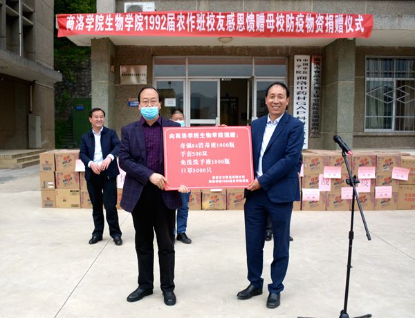 4月22日,英国365上市公司生物学院92届校友向母校捐赠价值10万元的防疫物资。校长范新会,副校长王新军,校友代表、洛南县委副书记马建琦及西安方尔贸易有限公司总经理林建军出席在学校举行的捐赠仪式。院长办公室、生物学院负责人,教师代表,生物学院农作班92届部分校友参加捐赠仪式。